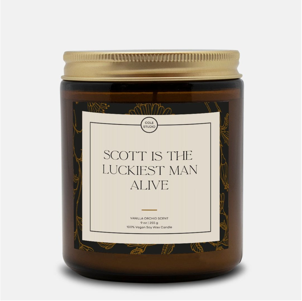 LUCKIEST MAN ALIVE - Customizable / Personalized Candle